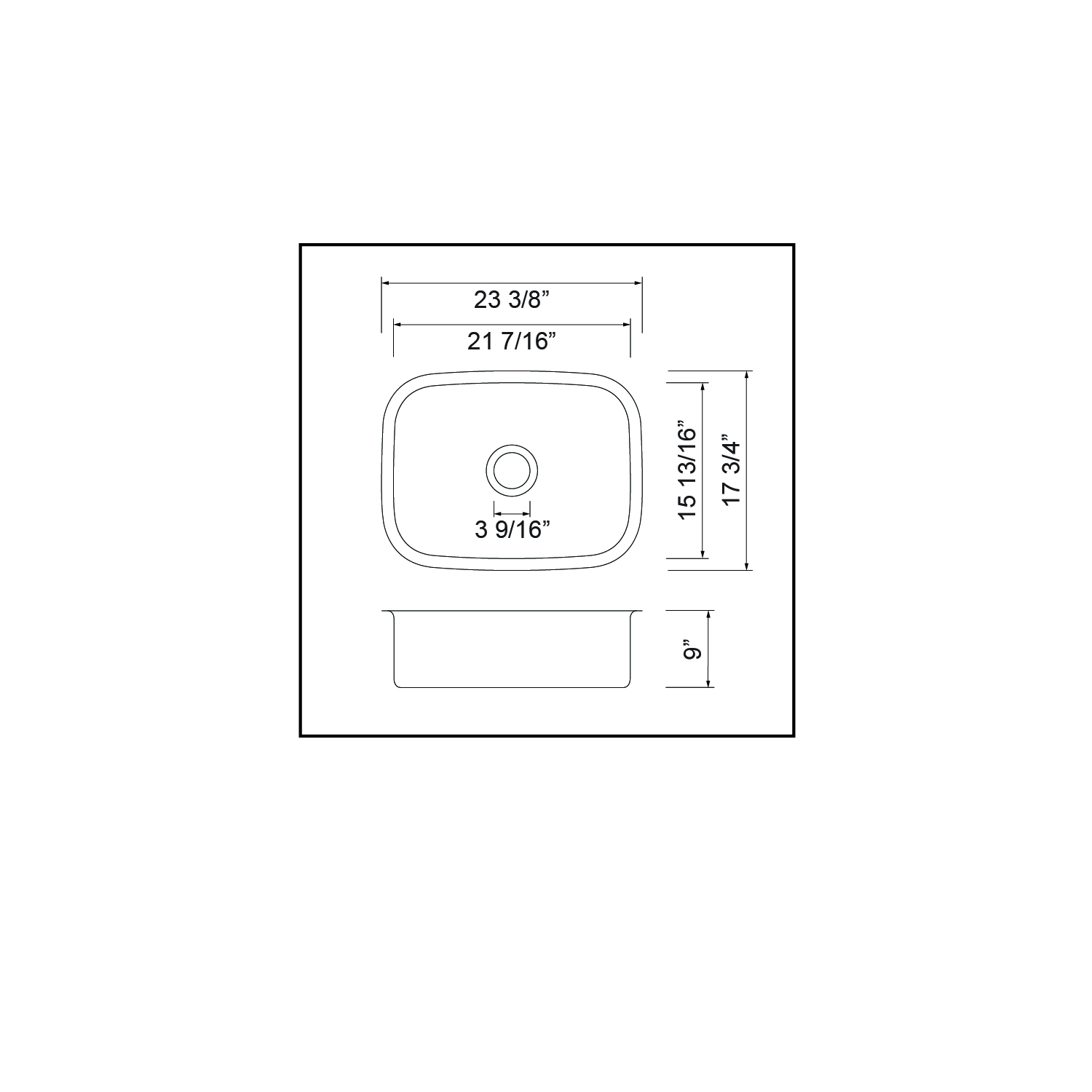 SLU400 23″ Rectangular Under Mount 16-18 Gauge Single Bowl Stainless Steel Kitchen Sink